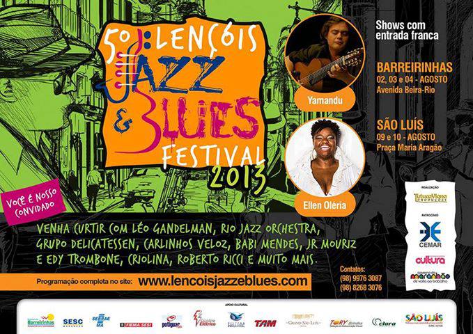 Os amantes do jazz e do blues já estão arrumando as malas para o evento que promete animar a cidade de Barreirinhas neste fim de semana. A quinta edição do Lençóis Jazz e Blues será aberta nesta sexta-feira (2/8) e vai até o domingo (4/8) em Barreirinhas. No fim de semana seguinte o evento segue para São Luís, onde será realizado nos dias 9 e 10, na Praça Maria Aragão. Tanto em Barreirinhas quanto na capital maranhense o festival é totalmente gratuito e possui uma programação paralela composta de oficinas e ações culturais e socioambientais, além dos shows musicais.