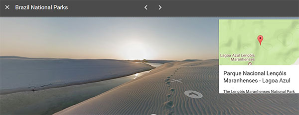 Você pode passear por todas as belezas naturais brasileiras presentes no StreetView através deste link. Ao carregar a nova página, clique em “Brazil National Parks” e vá alternando entre um e outro através de setas posicionadas no top da tela.