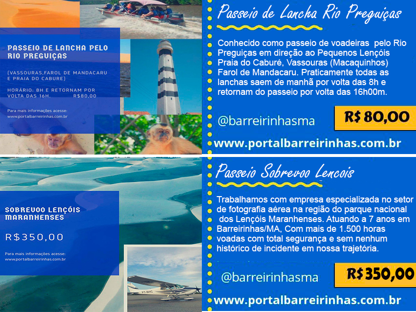 Escolha seu passeio e faça sua reserva através do email - Whatsapp (98) 98328-0100