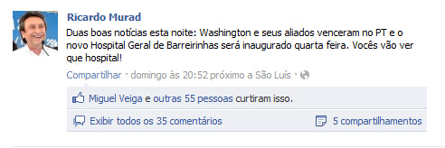 Imagem Facebook: Perfil Ricardo Murad, domingo 25 de março de 2012