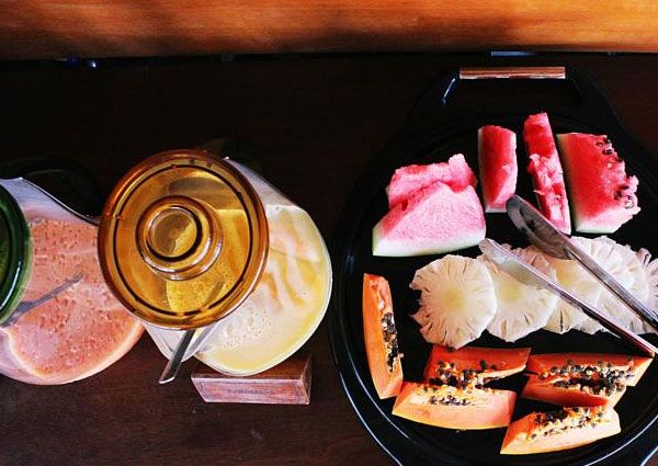 Servimos um delicioso café da manhã na área externa, junto ao jardim, com tapioca, bolo, frutas e sucos regionais, incluso na diária. Estamos equipados ainda com um amplificador de sinal Vivo para melhor atender nossos clientes, já que o sinal de celular na região é muito fraco.